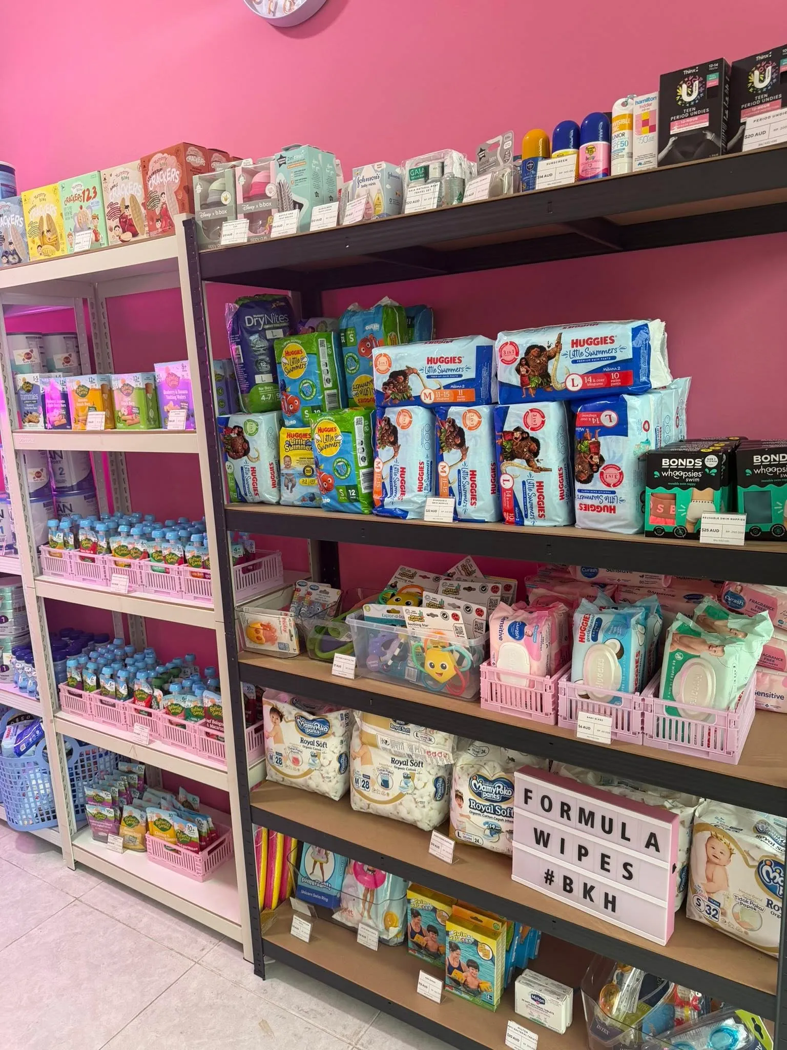 Our shelves are stocked with so many goodies, snacks, food, swim google, arm bands, baby wipes, nappy cream, sun hats..... the list is endless!